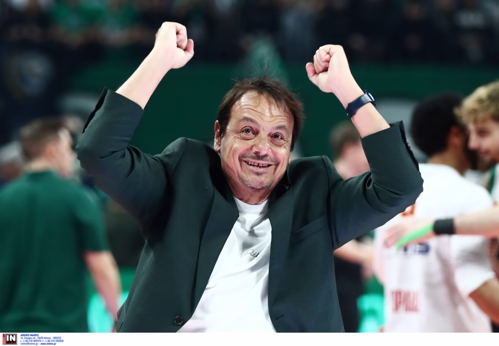 Ο Εργκίν Αταμάν στο φινάλε της αναμέτρησης πανηγύρισε με τις… γνωστές υψωμένες γροθιές, με τον Τούρκο τεχνικό να κάνει το γύρω του παρκέ και να αποθεώνεται από τον κόσμο του “τριφυλλιού”.