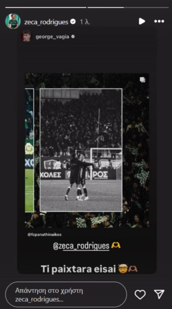 Ο Γιώργος Βαγιννίδης, που ξεχώρισε έγινε σύνθημα στο στόμα των φίλων της ομάδας και ο Ζέκα τον αποθέωσε μέσω Instagram: “Τι παιχταράς είσαι“