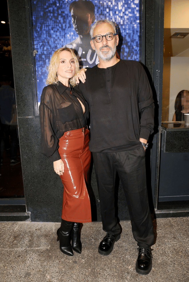 Τη συνόδευε ο σύντροφός της, Νίκος Συρίγος και μαζί, μετά το τέλος της παράστασης πόζαραν στο φωτογραφικό φακό.