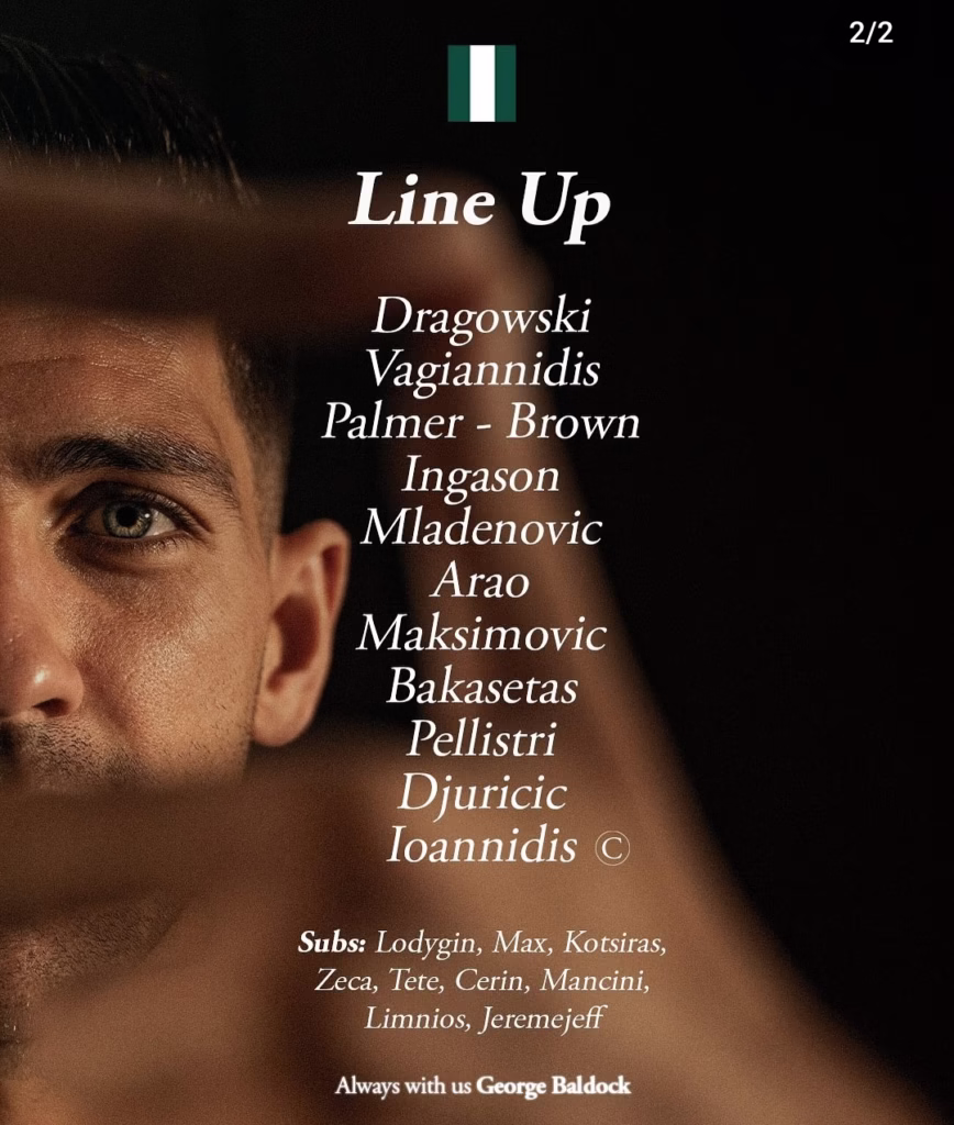 Ο Παναθηναϊκός θα ξεκινήσει με τον Ντραγκόφσκι κάτω από τα δοκάρια , ενώ στην άμυνα του θα έχει τους Βαγιαννίδη, Πάλμερ Μπράουν, Ίνγκασον και Μλαντένοβιτς.