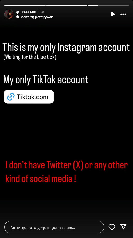 Πάντως, η ίδια σπεύδει να αναφέρει πως δεν διαθέτει λογαριασμό στο εν λόγω μέσο.